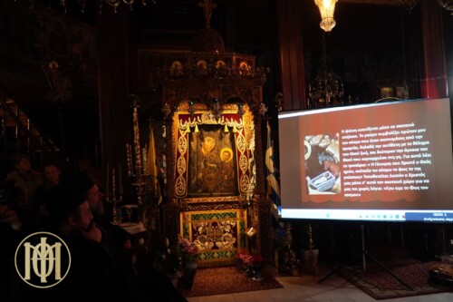 Αμέσως μετά ο ιερατικός προϊστάμενος της Εκκλησίας, π. Χρυσόστομος Ζαφείρης, παρουσίασε τη θεολογία της ιεράς εικόνος της Γεννήσεως του Κυρίου Ιησού. Ο ομιλητής με την εμπεριστατωμένη εισήγησή του αναφέρθηκε σε όλα τα πρόσωπα που απεικονίζονται στη σκηνή της Γεννήσεως.