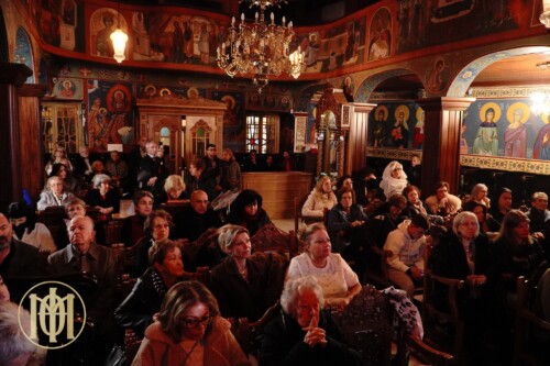 Κλείνοντας την εκδήλωση, ο Επίσκοπός συνεχάρη ενώπιον του πολυπληθούς ακροατηρίου τον Πρόεδρο του Εκκλησιαστικού Συμβουλίου, π. Χρυσόστομο Ζαφείρη, και τους στενούς συνεργάτες του για την άριστη προετοιμασία της εκδήλωσης, καθώς επίσης και τον υπεύθυνο της μόλις προ δύο μηνών ιδρυθείσας τριακονταμελούς χορωδίας, κ. Χρήστο Βρατζόπουλο.