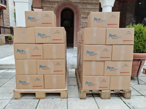 Από τα διακόσια (200) αυτά δέματα τα πενήντα (50) είναι προσφορά της Ένωσης Εφοπλιστών «ΣΥΝ-ΕΝΩΣΙΣ» και τα εκατόν πενήντα (150) διατίθενται μέσω του Φιλανθρωπικού Οργανισμού της Ιεράς Αρχιεπισκοπής Αθηνών «Αποστολή» από την υπεραγορά «Μασούτης».
