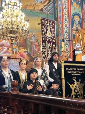 Μετά το πέρας του Εσπερινού, πραγματοποιήθηκε εντός του Ιερού Ναού εκδήλωση Μνήμης για τη Γενοκτονία των Ποντίων, με τη συμμετοχή του Νεοσύστατου Συλλόγου Ευξεινούπολης – Αλμυρού “Δαυίδ Μέγας Κομνηνός”. Τον πανηγυρικό λόγο της εκδήλωσης εκφώνησε η Πρόεδρος του Συλλόγου κ. Ευσταθία Χαρτοματσίδου με θέμα: “19η Μαΐου, ημέρα μνήμης και τιμής της γενοκτονίας των Ποντίων Ελλήνων”.
