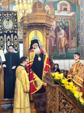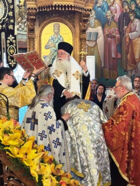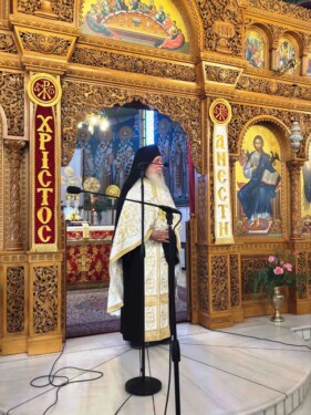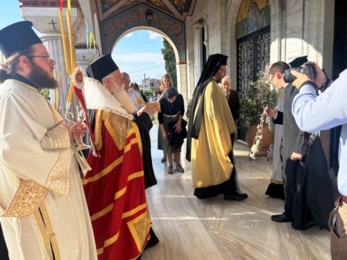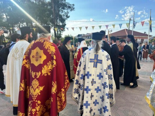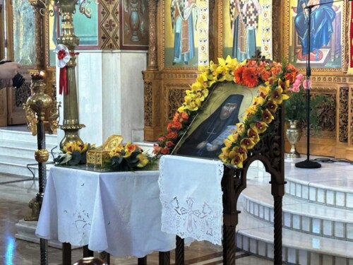 Στο τέλος του Εσπερινού, ο Σεβασμιώτατος ευχαρίστησε θερμά τον Άγιο Καθηγούμενο για την παρουσία του αλλά και για την πολύτιμη ευλογία της μεταφοράς του Ιερού Λειψάνου, επισημαίνοντας ότι «Η σημερινή ημέρα αποτελεί για όλους μας διπλή ευλογία. Τιμούμε τον Άγιο Νικόλαο, τον προστάτη της ενορίας, αλλά συγχρόνως στεκόμαστε με σεβασμό απέναντι στη μνήμη της γενοκτονίας των Ποντίων. Μια πληγή ακόμη ζωντανή που μας υπενθυμίζει ότι, όποτε διχαστήκαμε, χάσαμε. Όποτε ενωθήκαμε με πίστη, προχωρήσαμε. Είναι καθήκον μας να κρατούμε άσβεστη τη μνήμη των αδερφών μας και να χτίζουμε ενότητα με θεμέλιο την Ορθόδοξη Πίστη και την αγάπη για την πατρίδα μας. Η ενότητα σήμερα είναι ο μεγαλύτερος θησαυρός μας και προϋπόθεση για κάθε εθνική προκοπή. Αν θέλουμε πραγματικά μια ελεύθερη πατρίδα για τα παιδιά μας, πρέπει να μην ξαναζήσουμε ποτέ διχασμούς. Να ευχόμαστε και να προσευχόμαστε να έχουμε σύνεση, σοφία και την ευλογία των Αγίων μας».
