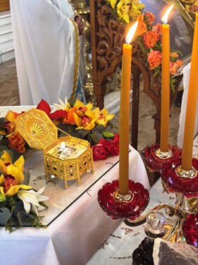 Ανήμερα της εορτής, τελέστηκε Πανηγυρική Θεία Λειτουργία, προεξάρχοντος του Αρχιμανδρίτου Ιωαννικίου Βαρβαρέλη, Καθηγουμένου της Ιεράς Μονής Παναγίας Προυσιώτισσας. Στο τέλος της Θείας Λειτουργίας τελέστηκε Ιερό Μνημόσυνο υπέρ αναπαύσεως των θυμάτων της Γενοκτονίας των Ποντίων.