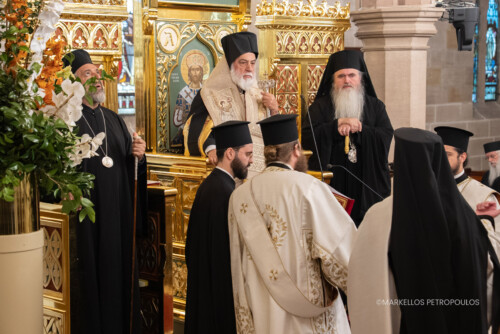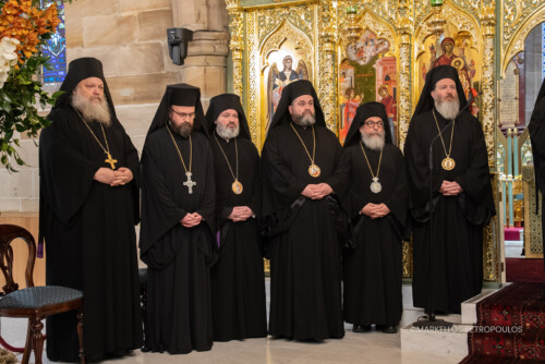 Παρέστησαν συμπροσευχόμενοι, από πλευράς της Ιεράς Αρχιεπισκοπής Αυστραλίας, ο Σεβασμιώτατος Αρχιεπίσκοπος κ. Μακάριος και τα περί Αυτόν μέλη της Ιεράς Επαρχιακής Συνόδου: Θεοφιλέστατοι Επίσκοποι Πέρθης κ. Ελπίδιος, Αδελαΐδος κ. Σιλουανός, Μελβούρνης κ. Κυριακός, Χώρας κ. Ευμένιος και Βρισβάνης κ. Βαρθολομαίος, καθώς επίσης οι Θεοφιλέστατοι Επίσκοποι Μιλητουπόλεως κ. Ιάκωβος και Μαγνησίας κ. Χριστόδουλος, οι Θεοφιλέστατοι εψηφισμένοι Επίσκοποι Καμπέρας κ. Αθηναγόρας και Κερασούντος κ. Χριστοφόρος, αντιπροσωπεία κληρικών και πιστών εκ του ποιμνίου του Σύδνεϋ. Εκ των προσκεκλημένων Αρχιερέων, κληρικών και μοναχών, παρέστησαν οι Σεβασμιώτατοι Μητροπολίτες Δημητριάδος και Αλμυρού κ. Ιγνάτιος, Καμερούν κ. Γρηγόριος, Νέας Κρήνης και Καλαμαριάς κ. Ιουστίνος, Σικάγου κ. Ναθαναήλ και Αιτωλίας και Ακαρνανίας κ. Δαμασκηνός, ο Πανοσιολογιώτατος Αρχιμανδρίτης κ. Ιγνάτιος Μουρτζανός, Πρωτοσύγκελλος της Ιεράς Μητροπόλεως Λαρίσης και Τυρνάβου, ο Οσιολογιώτατος Ιερομόναχος κ. Χρυσόστομος, Γέρων του Κελλίου του Αγίου Ιωάννου του Χρυσοστόμου, της Κουτλουμουσιανής Σκήτης στο Άγιον Όρος, και ο Ιερολογιώτατος κ. Φώτιος Πουλόπουλος, Πατριαρχικός Διάκονος.