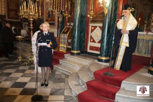Με την ολοκλήρωση της Δοξολογίας, ο σεπτός Ποιμενάρχης μας μίλησε για την μεγάλη κοινωνική προσφορά του Πυροσβεστικού Σώματος, όσον αφορά την προστασία της ανθρώπινης ζωής, των περιουσιών και της φύσης. Ιδιαίτερα για τον αγώνα που δίνουν οι πυροσβέστες κατά τη θερινή περίοδο για την προστασία των δασών, τόνισε ότι, πέρα από τις συνέπειες της κλιματικής αλλαγής, η εσκεμμένη καταστροφή του φυσικού περιβάλλοντος αποτελεί παράλληλα και προσβολή στον Πανάγαθο Θεό, που το δημιούργησε για να ζει μέσα σε αυτό και να το απολαμβάνει ο Άνθρωπος. Ολοκληρώνοντας, ευχήθηκε στα στελέχη του Πυροσβεστικού Σώματος οι επεμβάσεις τους να είναι ακίνδυνες για τους ίδιους και σωτήριες για τους ανθρώπους και τη φύση.