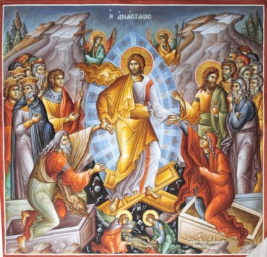 Ἡ Ἀνάστασις τοῦ Κυρίου εἶναι ἕνα κάλεσμα, μία πρόσκλησις νά ἐκτινάξουμε τόν ὕπνο τοῦ πνευματικοῦ θανάτου, νά πλησιάσουμε μέ πίστη τόν Ἀναστάντα Θεάνθρωπο Ἰησοῦ μας. Νά ζητοῦμε, Ἐκεῖνον! Τόν Δυνατό! τόν Ἀναστάντα! Νά προσβλέψουμε στό βλέμμα Του, ὅπως στήν εἰκονογραφία ὁ Ἀδάμ, νά Τόν παρακαλοῦμε νά ἔρθει νά μᾶς σώσει, νά μᾶς λυτρώσει. Καί θά τό κάνει. Δέν μπορεῖ νά μήν τό κάνει. Γι’ αὐτό ἀναστήθηκε, «διά τήν δικαίωσιν ἡμῶν».