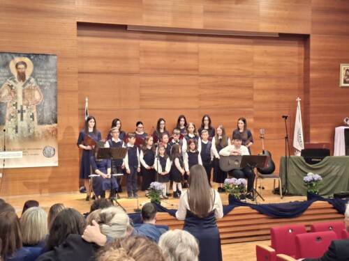 Στην εκδήλωση τα μέλη της παιδικής και της νεανικής χορωδίας έψαλαν ύμνους και άσματα της Μεγάλης Εβδομάδος.