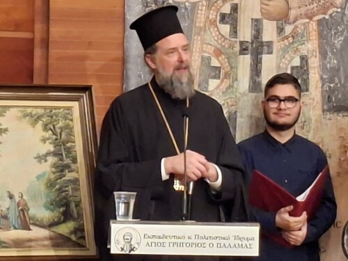 Από την Αδελφότητα προσκεκλημένος ομιλητής ήταν ο π. Βασίλειος Καλλιακμάνης, κληρικός της Ιεράς Μητροπόλεως Νεαπόλεως και Σταυρουπόλεως και ομότιμος καθηγητής της Θεολογικής Σχολής του Α.Π.Θ.