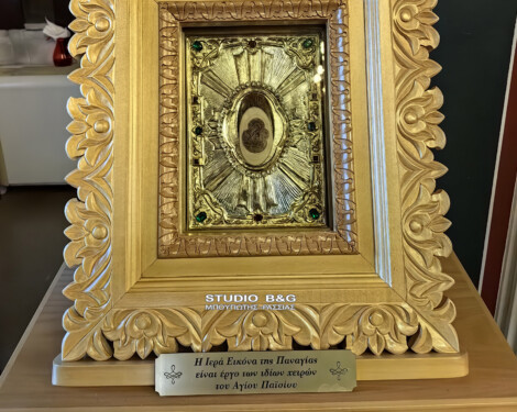 Στον Ιερό Ναό της Ευαγγελιστρίας Ναυπλίου φυλάσσεται πλέον ένα μικρό αλλά μεγάλου πνευματικού πλούτου εικονίδιο: η Παναγία που κρατά τον Χριστό, σκαλισμένη με τα ίδια τα χέρια του Αγίου Παϊσίου του Αγιορείτη.