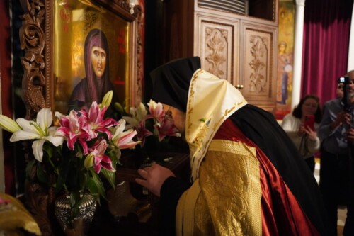 Το απόγευμα του Σαββάτου, 14 Φεβρουαρίου, προ της ενάρξεως του Εσπερινού, με την δέουσα εκκλησιαστική τάξη καί σε κλίμα κατανύξεως, υπεδέχθησαν έμπροσθεν των προπυλαίων του ιερού ναού της του Θεού Σοφίας απότμημα του ιερού λειψάνου της Οσίας Γαβριηλίας της Ελεήμονος ο Σεβ. Μητροπολίτης Ελβετίας κ. Μάξιμος μαζί με πλήθος πιστών.