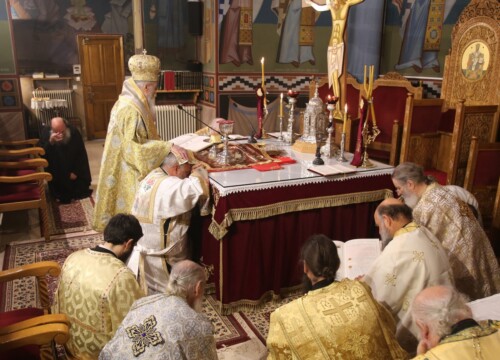 Μετά τήν μεγάλη Δοξολογία ἀναγνώσθηκε ἡ Κανονική Συμμαρτυρία ἀπό τόν πνευματικό τοῦ ὑποψηφίου, τόν π. Πρόδρομο Ἀσημακόπουλο, καί ἐν συνεχείᾳ τελέσθηκε ἡ χειροθεσία εἰς Ὑποδιάκονον καί ἀκολούθησε ἡ θεία Λειτουργία.Στήν προσφώνησή του πρός τόν Ὑποδιάκονο ὁ Σεβασμιώτατος ἀναφέρθηκε στόν ἑορτάζοντα ἅγιο Δαμασκηνό τόν Στουδίτη. Ὁ ἅγιος Δαμασκηνός, Θεσσαλονικεύς στήν καταγωγή, ἔπειτα μοναχός τῆς Μονῆς Στουδίου, Ἐπίσκοπος Λιτῆς καί Ρεντίνης καί στήν συνέχεια Μητροπολίτης Ναυπάκτου καί Ἄρτης, ἦταν ὁ πιό λόγιος καί ἐνάρετος Κληρικός τῆς ἐποχῆς του. Ἐκοιμήθη τό ἔτος 1577 στήν Ναύπακτο, χωρίς νά γνωρίζουμε ποῦ ἀκριβῶς ἐτάφη.
