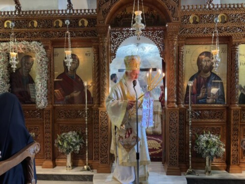 Την Πέμπτη 8 Μαΐου 2025, εορτή του Αγίου Ιωάννου του Θεολόγου, ο Σεβασμιώτατος Μητροπολίτης Θηβών και Λεβαδείας κ. Γεώργιος τέλεσε τη Θεία Λειτουργία στην Ιερά Μονή Αγίου Ιωάννου του Θεολόγου στο Μαζαράκι Βαγίων, με την συμμετοχή πολλών πιστών. Ο Σεβασμιώτατος στο κήρυγμα ανέλυσε το ευαγγελικό ανάγνωσμα της ημέρας, και ευχήθηκε στην Καθηγουμένη της Μονής οσιολογιωτάτη Γερόντισσα Ευπραξία, στην αδελφότητα της Μονής και σε όλους τους προσκυνητές χρόνια πολλά και ευλογημένα.
