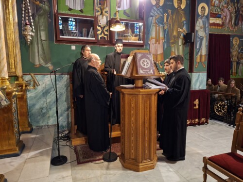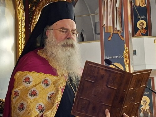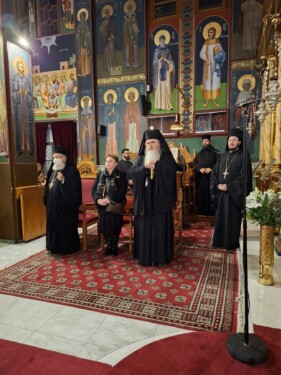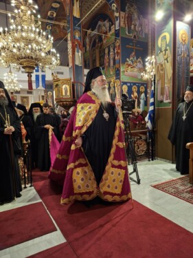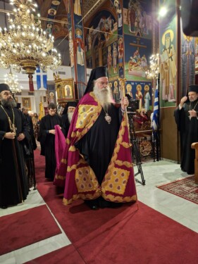 Ο πανηγυρικός Εσπερινός τελέστηκε χοροστατούντος του Θεοφιλεστάτου Επισκόπου Δομενίκου κ. Αθηναγόρα.