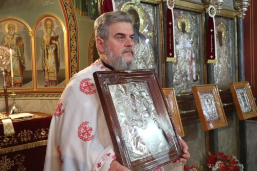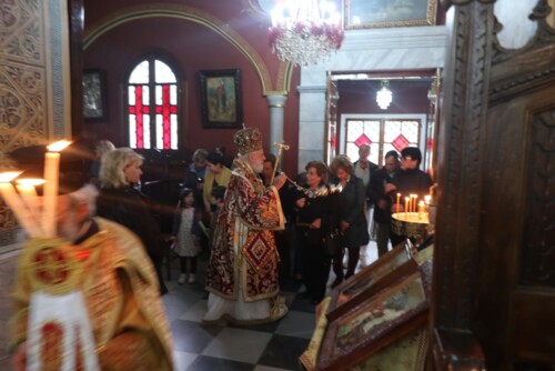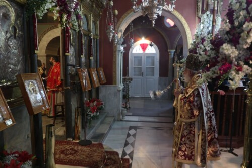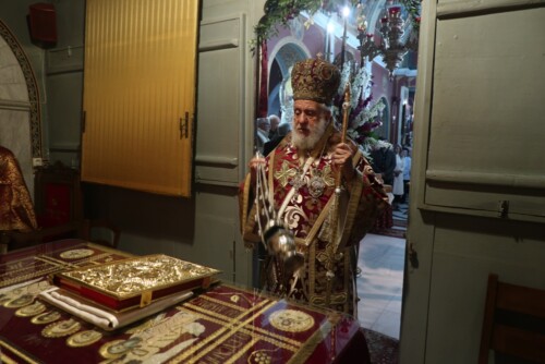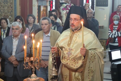 Στην σύντομη Εόρτιο Προσλαλιά του, ο Σεβασμιώτατος κ. Δωρόθεος Β’ ανεφέρθη στον βίο και την άθληση του Αγίου Γεωργίου, ο οποίος γενναίος στρατιώτης του Χριστού, παραμένοντας πιστός σ’ Αυτόν μέχρι θανάτου μαρτυρικού και καταλείποντας υπομνήματα τρoπαιοφόρου γενναιοφροσύνης, στην νικηφόρα αντιμετώπιση των προβλημάτων και δυσκολιών της καθ’ ημέραν ζωής.