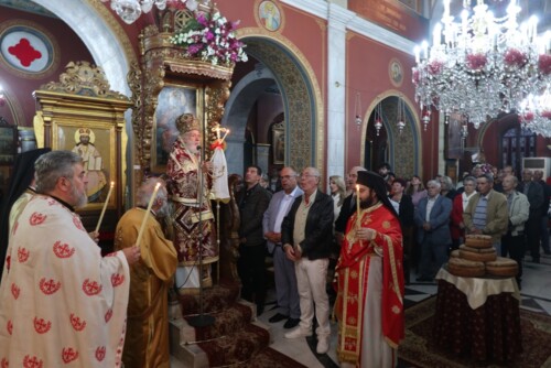 Ο Σεβασμιώτατος Μητροπολιτης Σύρου κ. Δωρόθεος Β’ προέστη του Εόρτιου Εσπερινού του Αγίου Μεγαλομάρτυρος Γεωργίου που τελέσθηκε στον ομώνυμο Ιερό Κοιμητηριακό Ναό στην Ερμούπολη, εκ των παλαιοτέρων της πόλεως, εγκαινιασθείς το 1834 από τον Κυκλάδων Άνθιμο Κομνηνό, με τη συμμετοχή των Εφημερίων της Σύρου και την παρουσία του Συντονιστή της Αποκεντρωμένης Διοίκησης Αιγαίου κ. Πολυκάρπου Πολυχρονάκη, του Δημάρχου Σύρου-Ερμούπολης κ. Αλέξ. Αθανασίου, Αντιδημάρχων και Δημοτικών Συμβούλων και πολλών πιστών.