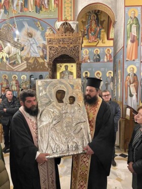 Με αισθήματα ευγνωμοσύνης, τιμής και σεβασμού προς το Υπερευλογημένο Πρόσωπα της Κυρίας Θεοτόκου, της Μητέρας όλου του κόσμου και Υπερμάχου Στρατηγού του Γένους, η πολυπληθής Ενορία του Αγίου Αθανασίου Λαμίας προέπεμψε την Ιερά και Θαυματουργό Εικόνα της Παναγίας Αντινίτσης στον Θρόνο της και στο Παναγιοφρούρητο και Ιστορικό Μοναστήρι της.
