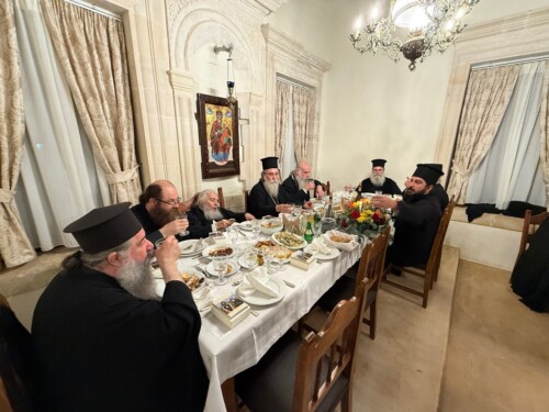 Ακολούθησαν σύντομοι χαιρετισμοί από τον Πρωτοσύγκελλο της Ιεράς Μητροπόλεως Κυδωνίας και Αποκορώνου π. Νικηφόρο Εικοσιδέκα, εκ μέρους του ιερού κλήρου της Μητροπόλεως και με την ιδιότητα του Τοποτηρητού του τιμώμενου Ιεράρχου, ευχαριστώντας «δια την πατρική αγάπη και φροντίδα της περιόδου της Τοποτηρητείας», προσφέροντας Αρχιερατικό εγκόλπιο, την Υφυπουργό Μετανάνευστης κ. Σέβη Βολουδάκη, τον Περιφερειάρχη Κρήτης κ. Σταύρο Αρναουτάκη, τους Δημάρχους: Κισάμου κ. Γεώργιο Μυλωνάκη, Πλατανιά κ. Ιωάννη Μαλανδράκη, Καντάνου-Σελίνου κ.Αντώνιο Περράκη, Αποκόρωνα κ. Χαράλαμπο Κουκιανάκη και Χανίων κ. Παναγιώτη Σημαντηράκη, οι οποίοι, με λόγους αγάπης και σεβασμού, θέλησαν να αναφερθούν εις το πρόσωπο και την προσφορά του τιμωμένου Ιεράρχου.