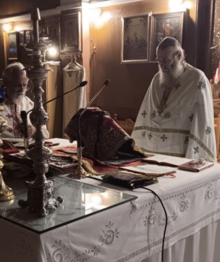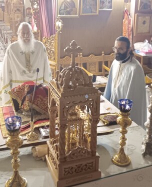 «Μετά το πέρας της Θείας Λειτουργίας, προσφέρθηκαν ευλογημένα κεράσματα, ως ένδειξη αγάπης και ευχαριστίας.»