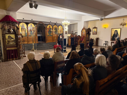 Στη συνέχεια ο Σεβ. Μητροπολίτης κ. Κύριλλος άνοιξε τον φετινό κύκλο των καθιερωμένων ομιλιών κατά τους Κατανυκτικούς Εσπερινούς της Μεγ. Τεσσαρακοστής, αναπτύσσοντας το θέμα <<Αγία και Μεγάλη Τεσσαρακοστή: Πορεία προς το Πάσχα>>.
