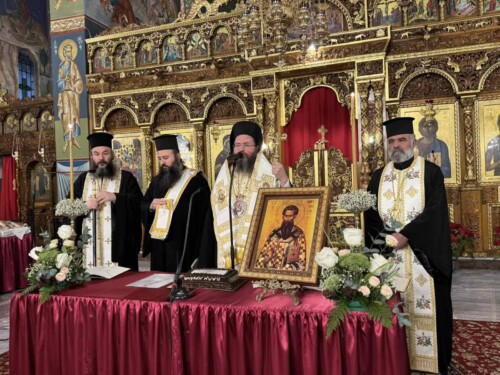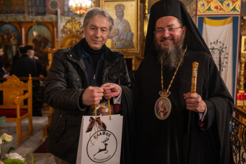 Στο τέλος ο Μητροπολίτης διένειμε τα κομμάτια της ευλογημένης βασιλόπιτας, επικαλούμενος σε όλους δαψιλή την χάρη και την ευλογία του αγίου Θεού.