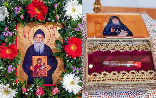 Φιαλίδιο με αίμα του Οσίου Πορφυρίου του Καυσοκαλυβίτου στην Παναγία Δοβρά