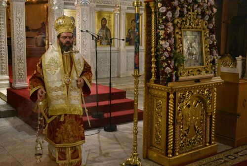 Ιερούργησαν ο Σεβασμιώτατος Μητροπολίτης Μαρωνείας και Κομοτηνής κ. Παντελεήμων και ο Σεβασμιώτατος Μητροπολίτης Κίτρους, Κατερίνης και Πλαταμώνος κ. Γεώργιος, Καθηγητής του Τμήματος Θεολογίας της Θεολογικής Σχολής του Αριστοτελείου Πανεπιστημίου Θεσσαλονίκης.