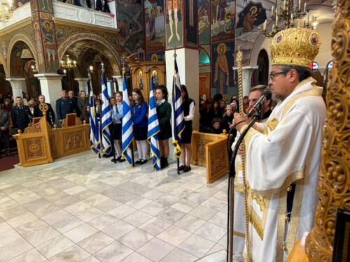 Στο τέλος της Θείας Λειτουργίας, ο Θεοφιλέστατος τέλεσε τη Δοξολογία για την ημέρα της Εθνικής Αντιστάσεως, παρουσία των τοπικών πολιτικών και αυτοδιοικητικών αρχών, εκπροσώπων του στρατού και των σωμάτων ασφαλείας, καθώς και πλήθους πιστών.