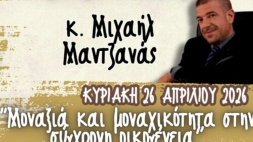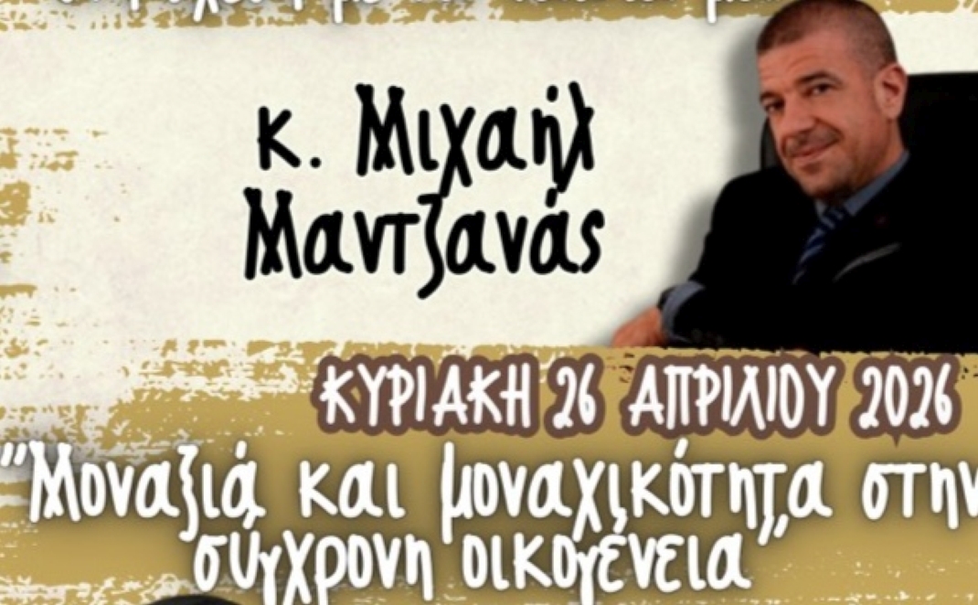 Η επόμενη ομιλία θα γίνει την Κυριακή 26 Απριλίου 2026, στις 7.00 μ.μ. στον Ιερό Μητροπολιτικό Ναό Αγίου Αχιλλίου Λαρίσης. Προσκεκλημένος ομιλητής είναι ο κ. Μιχαήλ Μαντζανάς, Καθηγητής Φιλοσοφίας του ΕΚΠΑ, ο οποίος θα αναπτύξει το θέμα: «Μοναξιά και μοναχικότητα στη σύγχρονη οικογένεια».