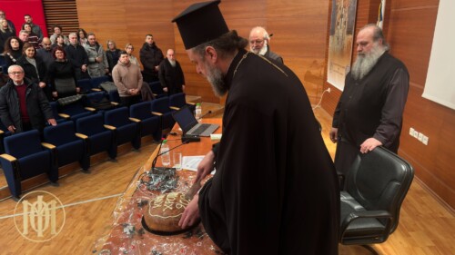 Στο τέλος της Συνάντησης ο Παναγιώτατος  Μητροπολίτης Θεσσαλονίκης κ. Φιλόθεος, ευλόγησε την πρωτοχρονιάτικη βασιλόπιτα της Σχολής Γονέων και ευχήθηκε πατρικώς σε όσους προσήλθαν στη Συνάντηση καλή φώτιση και υγεία κατά το νέο έτος που ανέτειλε.