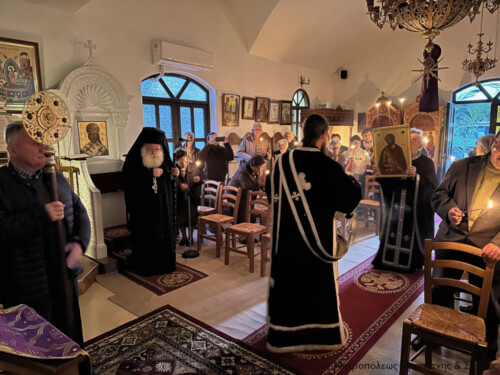 Στο τέλος της ακολουθίας ο Σεβασμιώτατος κ. Κύριλλος ευχήθηκε καλή Αγία και Μεγάλη Εβδομάδα συμπορευόμενοι με τον Νυμφίο Κύριό μας Ιησού Χριστό στην πορεία Του προς τον Γολγοθά και τη Ζωηφόρο Ανάστασή Του. Επίσης, αναφέρθηκε εν συντομία στα γεγονότα που προβάλλει και εορτάζει η Εκκλησία μας αυτή την ημέρα, δηλ. την ξηρανθείσα συκή και τον Πάγκαλο και σώφρωνα Ιωσήφ, που αποτελεί την προτύπωση του Νυμφίου Χριστού.