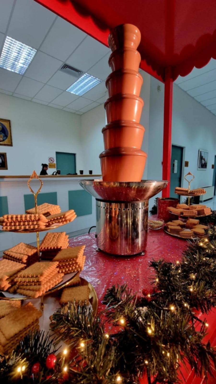 Οι παρευρισκόμενοι απόλαυσαν γιορτινά κεράσματα, ενώ τα παιδιά ενθουσιάστηκαν βουτώντας μπισκότα στο συντριβάνι σοκολάτας — μια στιγμή αυθεντικής παιδικής χαράς που σκόρπισε χαμόγελα σε μικρούς και μεγάλους. Η εκδήλωση κορυφώθηκε όταν τα μικρά παιδιά τραγούδησαν τα κάλαντα, μεταφέροντας σε όλους τη ζεστασιά και την αγνότητα της Γέννησης του Χριστού.