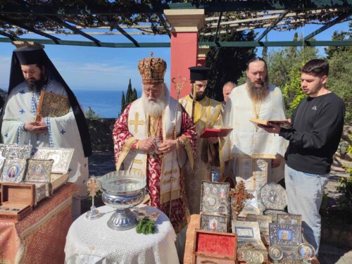 Ακολούθως πραγματοποιήθηκε η καθιερωμένη λιτανεία των Ιερών Λειψάνων στον περίβολο της Μονής και εν συνεχεία εψάλη η Ακολουθία του Αγιασμού, ως έκφραση ευχαριστίας και δεήσεως για τη νέα περίοδο της αναστάσιμης χαράς που ανέτειλε στη ζωή της Εκκλησίας μας.