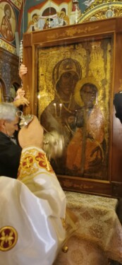 Το Σάββατο αυτό, 3 Μαίου η ιερά εικόνα επέστρεψε στο “σπίτι της”, στη Νέα Μηχανιώνα. Το απόγευμα πραγματοποιήθηκε η υποδοχή και ακολούθησε ο Αρχιερατικό Εσπερινός. Την Κυριακή των Μυροφόρων τελέστηκε Αρχιερατική Θεία Λειτουργία.