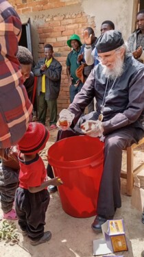 Στο πλαίσιο της επίσκεψης, προσφέρθηκαν επίσης τρόφιμα για την ενίσχυση του γεύματος που παρέχεται στα παιδιά. Συγκεκριμένα, παραδόθηκαν στο σχολείο σακιά με φασόλια, καλαμπόκι και αλεύρι, καθώς και λάδι, ενώ ιδιαίτερη χαρά προκάλεσε στα παιδιά η προσφορά σοκολάτας και παραδοσιακών γλυκισμάτων «μαντάζι», που θυμίζουν λουκουμάδες. Τα τρόφιμα θα συμβάλουν ουσιαστικά στη σίτιση των μαθητών, πολλοί από τους οποίους λαμβάνουν το μοναδικό τους πλήρες γεύμα στο σχολείο. Η προσφορά αυτή αποτελεί δωρεά της κυρίας Μαγδαληνής υπέρ υγείας Γεωργίου και του κυρίου Τιμολέων Κοσμίδη υπέρ αναπαύσεως Θεοδώρου, τους οποίους η τοπική Εκκλησία μνημονεύει με ευγνωμοσύνη.