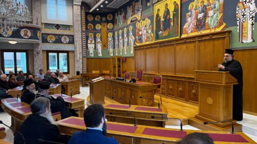 Σήμερα, Δευτέρα 23 Μαρτίου 2026, πραγματοποιήθηκε στην Αίθουσα του Μεγάλου Συνοδικού της Ιεράς Συνόδου της Εκκλησίας της Ελλάδος η καθιερωμένη ετήσια εκδήλωση για την Εθνική Εορτή της 25ης Μαρτίου.