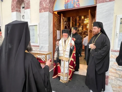Την παραμονή της εορτής, Δευτέρα 15 Σεπτεμβρίου 2025, πραγματοποιήθηκε υποδοχή Ιερού Λειψάνου του Αγίου Νεκταρίου του εκ Βρυούλων και στη συνέχεια τελέσθηκε ο Μέγας Πανηγυρικός Εσπερινός, χοροστατούντος του Σεβασμιωτάτου Μητροπολίτου Ανέων κ. Μακαρίου.