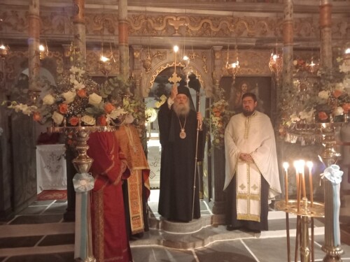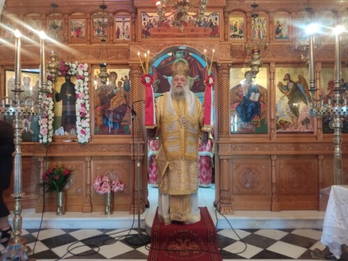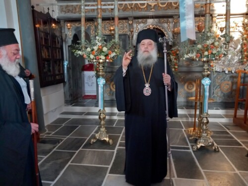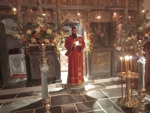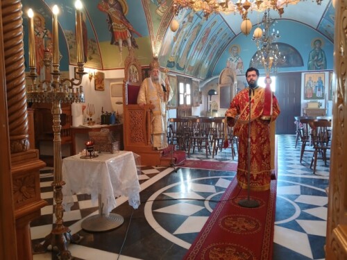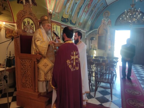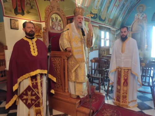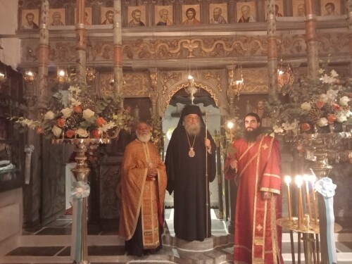 Τον Σεβασμιώτατο πλαισίωσαν ο οικείος εφημέριος Πρωτοπρ. π. Μιχαήλ Παραράς, ο Οικ. π. Νικόλαος Βλασερός και ο Αρχιδιάκονος π. Νεκτάριος Σκουλάτος, ο οποίος κήρυξε και τον θείο λόγο.
