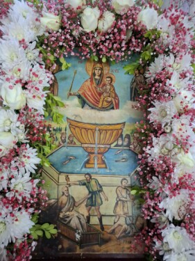 Μετά το πέρας του εσπερινού ακολούθησε η λιτανεία της εικόνος της Ζωοδόχου Πηγής προερχόμενη απο την Αφθόνη της νήσου Μαρμαρά η οποία εκομίσθει απο την  ευσεβή οικογένεια του εκκλησιαστικού συμβουλου κ. Παναγιώτου Αντωνίου ο οποίος χορήγησε και την πανηγυρική δοχή της εορτής.
