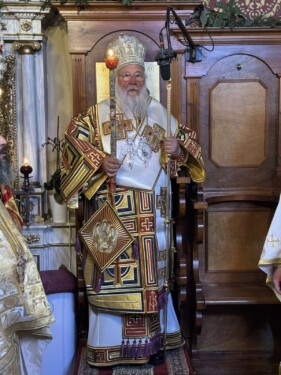 Ο Άγιος Γεώργιος είναι άγιος που ο λαός μας σέβεται ιδιαιτέρως και γι’ αυτό πολλοί και πολλές φέρουν το όνομά του. Ένας καλλιτέχνης πρόσφατα προσπάθησε να διακωμωδήσει τον Άγιο. Ο Άγιος όμως δεν παθαίνει τίποτα. Εμείς όμως οφείλουμε σεβασμό. Ο Άγιος Γεώργιος είναι αγωνιστής της πίστεως, παιδί της αναστάσεως και παράδειγμα για όλους μας, ώστε να αγαπούμε τον Θεό, να συγχωρούμε ο ένας τον άλλον και να παλεύουμε και αυτό είναι το νόημα της εορτής, επεσήμανε ο κ. Θεόκλητος.