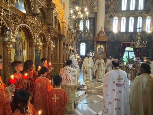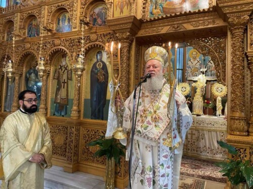 Ο Σεβασμιώτατος κ. Χρυσόστομος κήρυξε τον θείο λόγο κατά τη σύναξη των πιστών, μεταξύ των οποίων και οι μαθητές και οι μαθήτριες του 15ου Δημοτικού Σχολείου Χαλκίδος, ενώ προ του «Δι’ ευχών» τέλεσε μνημόσυνο υπέρ αναπαύσεως του μακαριστού Αρχιεπισκόπου Αθηνών και πάσης Ελλάδος κυρού Χριστοδούλου.