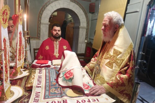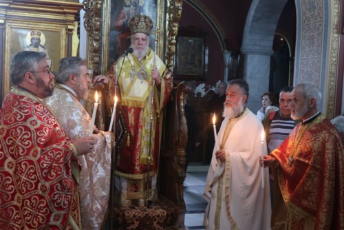 Ο Σεβασμιώτατος Μητροπολίτης Σύρου κ. Δωρόθεος Β’ ιερούργησε χτες το πρωί στον πανηγυρίζοντα Ιερό Κοιμητηριακό Ναό του Αγίου Γεωργίου Ερμουπόλεως, με τη λειτουργική συμμετοχή του Εφημερίου του Ιερού Ναού Αρχιμ. Δωροθέου Γάγγου και Εφημερίων της Σύρου, και την παρουσία του Αντιπεριφερειάρχη Κυκλάδων κ. Γ. Λεονταρίτη, του Αντιδημάρχου Σύρου – Ερμούπολης κ. Δημ. Κοσμά, του Στρατηγού Διευθυντού των Αστυνομικών Υπηρεσιών Ν. Αιγαίου, και πλήθους πιστών.