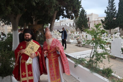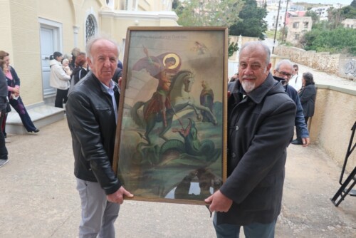 Μετά το πέρας της Θείας Λειτουργίας έλαβε χώρα λιτανεία της θαυματουργού Εικόνος του Αγίου Γεωργίου, στο παρακείμενο του Ναού Κοιμητήριο.