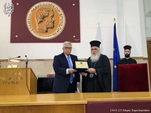 Η Εταιρεία Μακεδονικών Σπουδών την Τετάρτη 5 Νοεμβρίου 2025 ανακήρυξε το Σεβασμιώτατο Μητροπολίτη Νεαπόλεως και Σταυρουπόλεως κ. Βαρνάβα επίτιμο μέλος της Εταιρείας. Της βράβευσης Προηγήθηκε η ομιλία του Σεβασμιωτάτου κ. Βαρνάβα με θέμα: «H συμβολή του ιερού κλήρου στον Μακεδονικό Αγώνα».