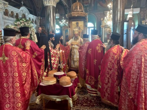 Ὅλες οἱ Ἱερὲς Ἀκολουθίες (Μ. Ἑσπερινός, Ὄρθρος, Θ.Λειτουργία καὶ Μεθεόρτιος Ἑσπερινὸς μὲ Ι. Παράκληση) ἐτελέσθησαν ἀρχιερατικῶς.