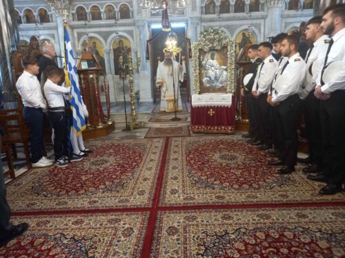 Στὴν Θ. Λειτουργία ὁ ἱερουργῶν Ἀρχιερεὺς ἐκήρυξε μὲ θέμα << Χριστὸν ἐνεδύσασθε >> καὶ ἀνεφέρθη στό Βάπτισμα ὡς ἔνδυση τοῦ Ἀναστάντος Χριστοῦ ἀλλὰ καὶ στὸ περιστατικὸ τοῦ κατὰ Μᾶρκον Εὐαγγελίου περὶ τοῦ περιβεβλημένου χιτῶνα νεανίσκου.