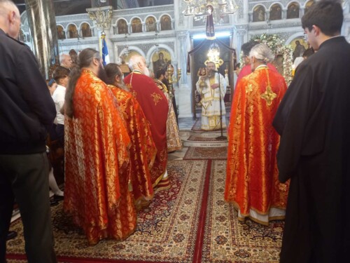 Ὅλες οἱ Ἱερὲς Ἀκολουθίες (Μ. Ἑσπερινός, Ὄρθρος, Θ.Λειτουργία καὶ Μεθεόρτιος Ἑσπερινὸς μὲ Ι. Παράκληση) ἐτελέσθησαν ἀρχιερατικῶς.