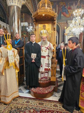 Κατὰ τόν Ἑσπερινὸ ὁ Χῖος Ποιμενάρχης ἔχειροθέτησε Ἀναγνώστην τὸν Σπουδαστὴν τῆς ΑΕΝ Χίου κ. Μιχαὴλ Καραγιάννην .