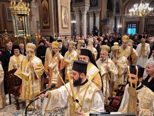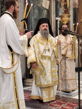 Της Θείας Λειτουργίας προεξήρχε ο Μακαριώτατος Αρχιεπίσκοπος Αθηνών και πάσης Ελλάδος κ. Ιερώνυμος, συμπαραστατούμενος από Σεβασμιωτάτους Μητροπολίτες Δημητριάδος και Αλμυρού κ. Ιγνάτιο, Χαλκίδος κ. Χρυσόστομο, Μεσσηνίας κ. Χρυσόστομο, Νέας Ιωνίας, Φιλαδελφείας, Ηρακλείου και Χαλκηδόνος κ. Γαβριήλ, Ιερισσού, Αγίου Όρους και Αρδαμερίου κ. Θεόκλητο, Θεσσαλιώτιδος και Φαναριοφερσάλων κ. Τιμόθεο, Θήρας, Αμοργού και Νήσων κ. Αμφιλόχιο, Γόρτυνος και Μεγαλοπόλεως κ. Νικηφόρο, Παραμυθίας, Φιλιατών και Γηρομερίου κ. Σεραπίωνα και τον Θεοφιλέστατο Επίσκοπο Σκοπέλου κ. Νικόδημο. Επίσης εκκλησιάσθηκαν πολλοί άλλοι Αρχιερείς.