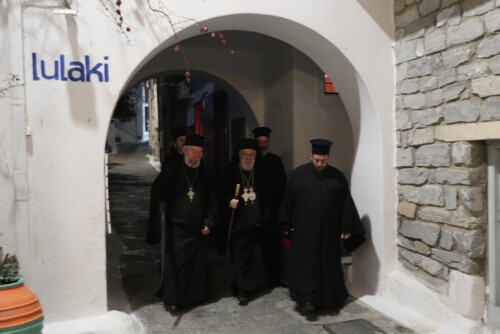 Ο Σεβασμιώτατος Μητροπολίτης Σύρου κ. Δωρόθεος Β’, προέστη εχθές του τελεσθέντος Εόρτιου Αρχιερατικού Εσπερινού, στον πανηγυρίζοντα Ιερό Ναό του Πολιούχου της νήσου ΑγίουΧαραλάμπους, στην Κάτω Χώρα της Κέας, με τη συμμετοχή των Εφημερίων της νήσου και την παρουσία των Βουλευτών Κυκλάδων κας Αικατ. Μονογυιού και κ. Φιλ. Φόρτωμα, του Επάρχου Κέας -Κύθνου κ. Ευάγ. Μαρτίνου, της Δημάρχου Κέας κας Ειρ. Βελισσαροπούλου, Αντιδημάρχων και Δημοτικών Συμβούλων, των Προϊσταμένων των Υπηρεσιών των Σωμάτων Ασφαλείας και πολλών ευσεβών Χριστιανών, οι οποίοι προσήλθαν να τιμήσουν τον Προστάτη τους.