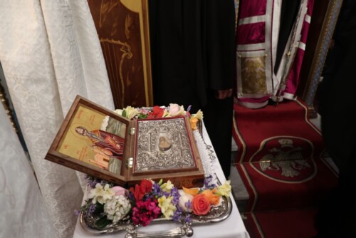 Αυτή την ώρα ο Σεβασμιώτατος κ. Δωρόθεος Β’ ιερουργει στον Μητροπολιτικό Ναό του Ευαγγελισμού, στην Ιουλίδα Κέας, όπου μεταφέρθηκαν η θαυματουργός Εικόνα και τίμιο Λείψανο του Αγίου Χαραλάμπους, προσφερθέν το 1979 από τον Ηγούμενο της Ιεράς Μονής Παναχράντου Άνδρου, Αρχιμ. Ευδόκιμο Φραγκουλάκη, χάρη στις προσπάθειες του αείμνηστου Πρωτοπρ. Μιχάηλ Χαστά.
