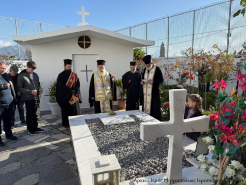 Στη συνέχεια μετέβη στον τάφο του μακαριστού Γέροντος Αναστασίου, ιδρυτού και κτήτορος του Ησυχαστηρίου, και ανέγνωσε Τρισάγιο για την ανάπαυση της ψυχής του.